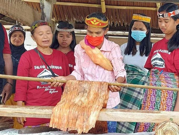 KAIN KULIT KAYU PRODUKSI SISWA SEKOLAH ADAT